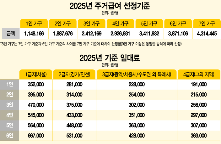 주거급여 지원금액은 가구원 수, 거주 지역, 실제 임차료 등에 따라 달라집니다. 올해부터는 임차가구 기준 월 18만원부터 시작하며, 가구원 수가 많을수록, 주거비용이 비싼 지역일수록 지원금액이 증가합니다.