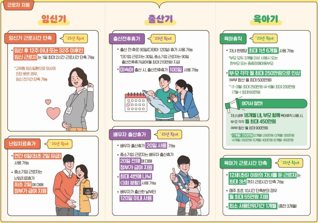 #출산지원정책 #첫만남이용권 #육아휴직 #난임지원 #임신근로자보호 #영아용품지원 #아이돌봄서비스 #양육비지원 #출산혜택 #신생아지원