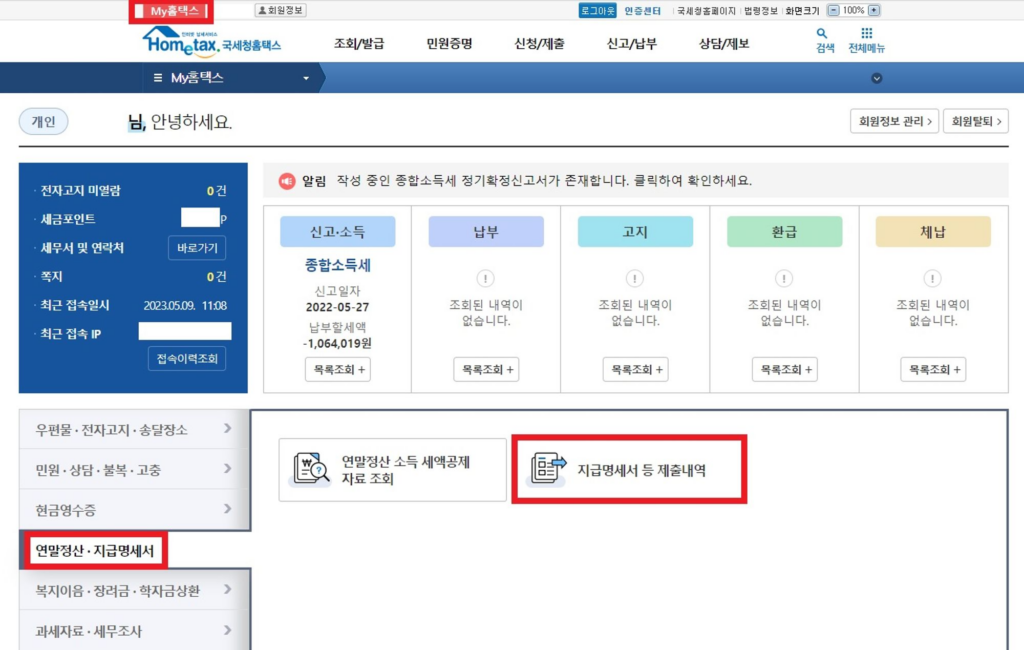 - 국세청 홈택스 접속