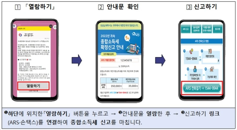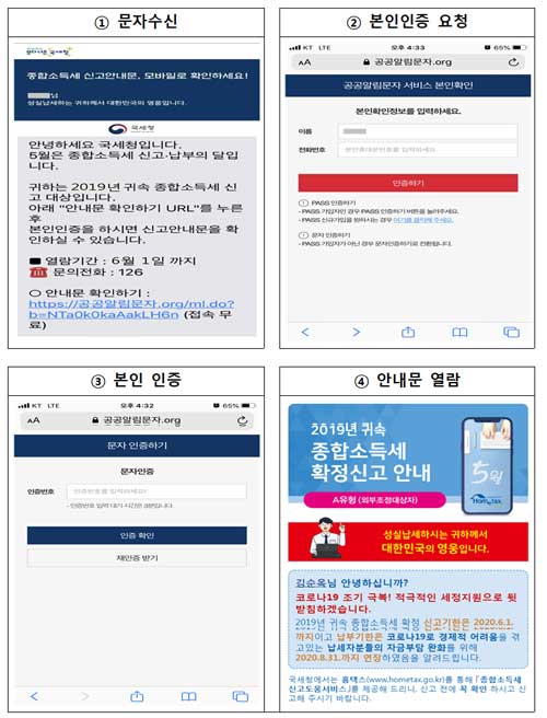 - 발신처가 진짜 국세청인지 확인 (보안을 위해 중요)